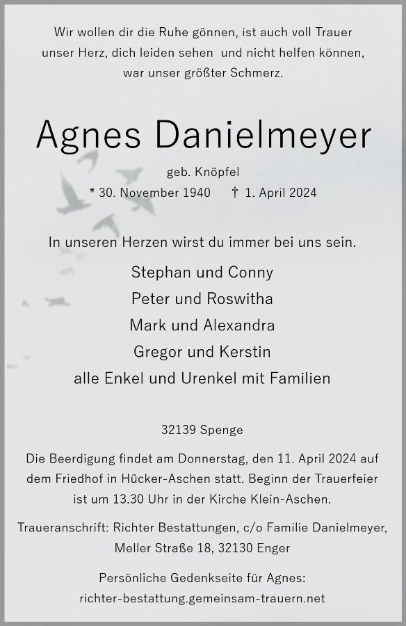 Agnes Danielmeyergestorben am 1. April 2024