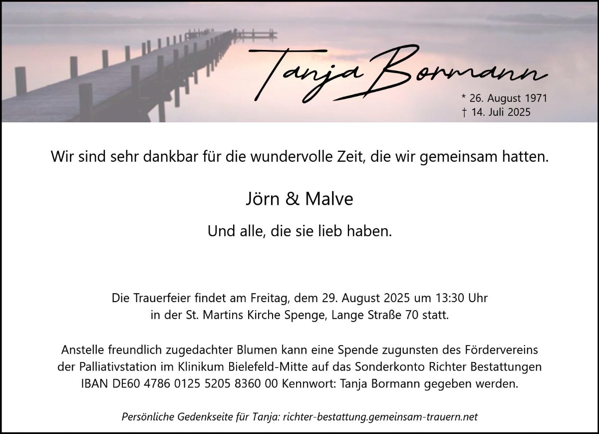 Tanja Bormanngestorben am 14. Juli 2025